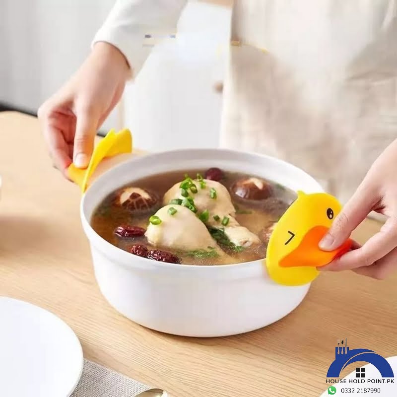 - You can safely remove the hot pot lid or hold the hot handle with the yellow duck.They also prevent fingers from feeling when they grip food.