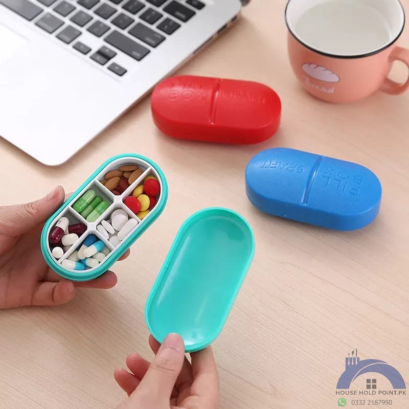 This Pill shaped box will carry 6 types of pills, it is compact making it easy to carry.