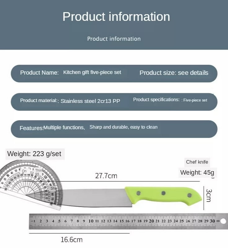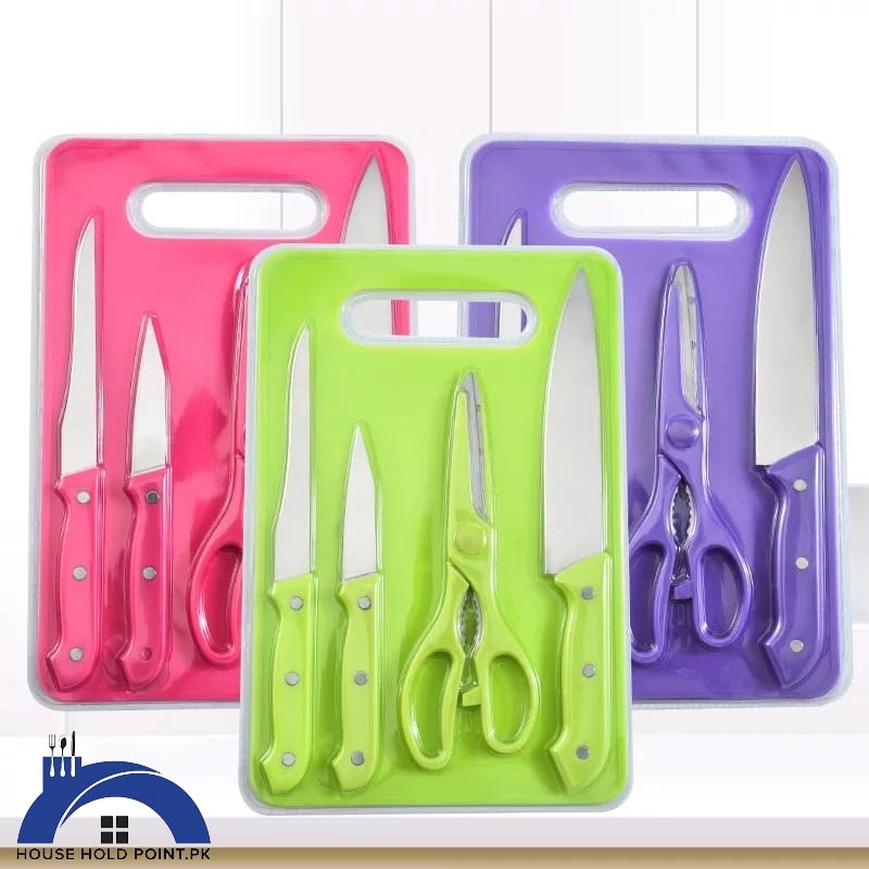5Pcs Knife, Scissors, Board Set